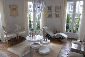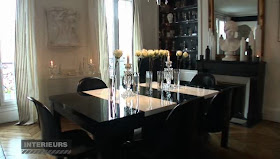 I spent part of this New Year's Day surfing the internet in search of interesting interiors and I'm so glad I did because I it led me to Fabrice Diomard. Most of the information about Fabrice is in French and has caused me to add "take a refresher French class" to my New Year's resolutions since I can only make out bits and pieces of the story. What I did manage to figure out is that Fabrice Diomard is an interior designer of Italian and Nordic descent and influence and owns a shop in Paris called L'Autre Maison. He works with the George V hotel and other clients and I think also designs furniture. I know his boutique is going to be my premier stop on my next trip to Paris.His apartment featured here displays that wonderful European flair for mixing antiques and in this case ancient statues with modern furniture including plexiglass pieces. There is a wonderful video tour of the home on Interieurs and although it is in French, it is worth checking out. I also found a few other articles and a floor plan which might looks a little off but will still give you a sense of the space. Even though the color palette is mostly black and white, it's never dull due to the varying shades of color and patina.
