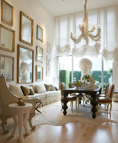 It's funny sometimes how you may see certain designs and not realize they are by the same person. I remember seeing the Stephen Shubel Design office, seen here, in the May 2008 issue of Domino magazine and loving it's neutral colors, classical statues and French feeling. So I was surprised to see that Stephen uses more color in his designs for clients as seen in the January 2009 issue of House Beautiful but sometimes those who work with color and pattern all day like to have a neutral backdrop. Whatever the case, I could see being very happy working or living in this beautiful space!Photos by Philip Harvey via Stephen Shubel Design